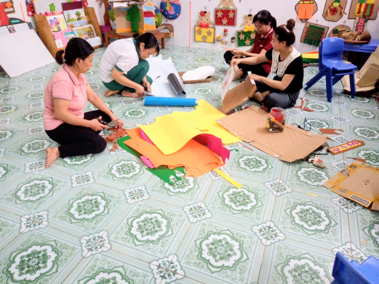 Mỗi lọ hoa giấy, mỗi tấm tranh, mỗi góc nhỏ… đều thấm đẫm tình yêu thương và sự kiên nhẫn của các cô. Không chỉ trang trí cho đẹp, mà còn tạo nên một môi trường thân thiện, an toàn và đầy cảm hứng nơi các con được học, được chơi, được lớn lên hạnh phúc.