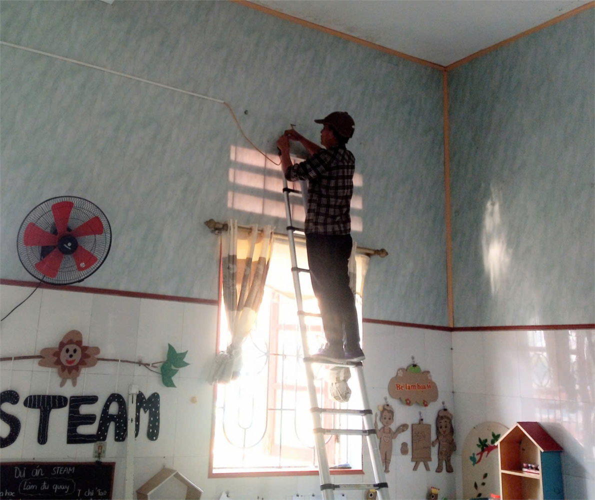 Hình ảnh thợ sửa hệ thống điện, nước cho lớp học