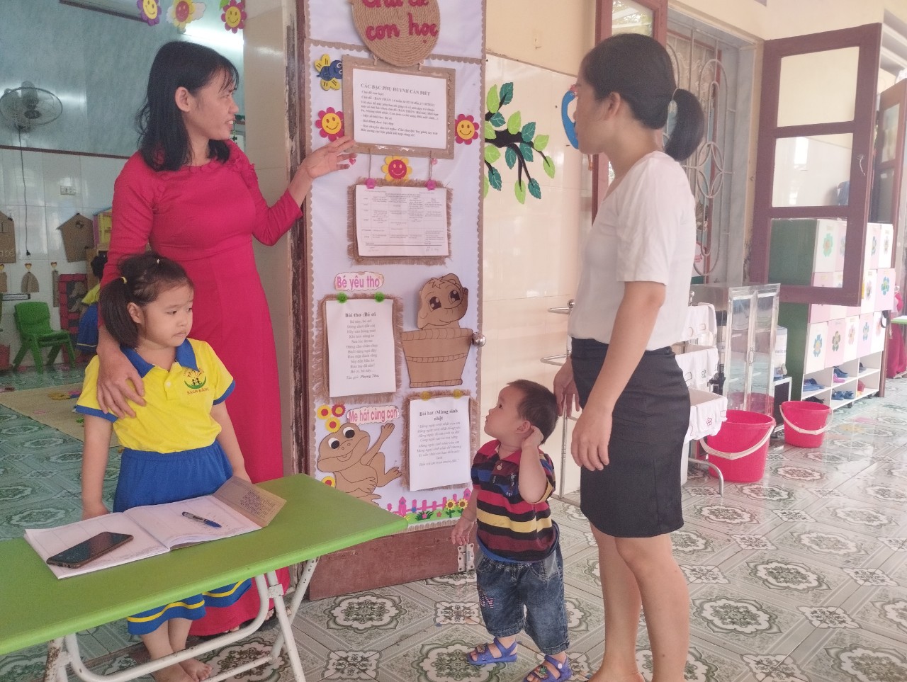 Đây cũng là điều kiện thuận lợi nhất để cô giáo trao đổi với phụ huynh những kiến thức cơ bản về công tác chăm sóc, nuôi dưỡng trẻ nhằm phát triển toàn diện về thể chất lẫn tinh thần.