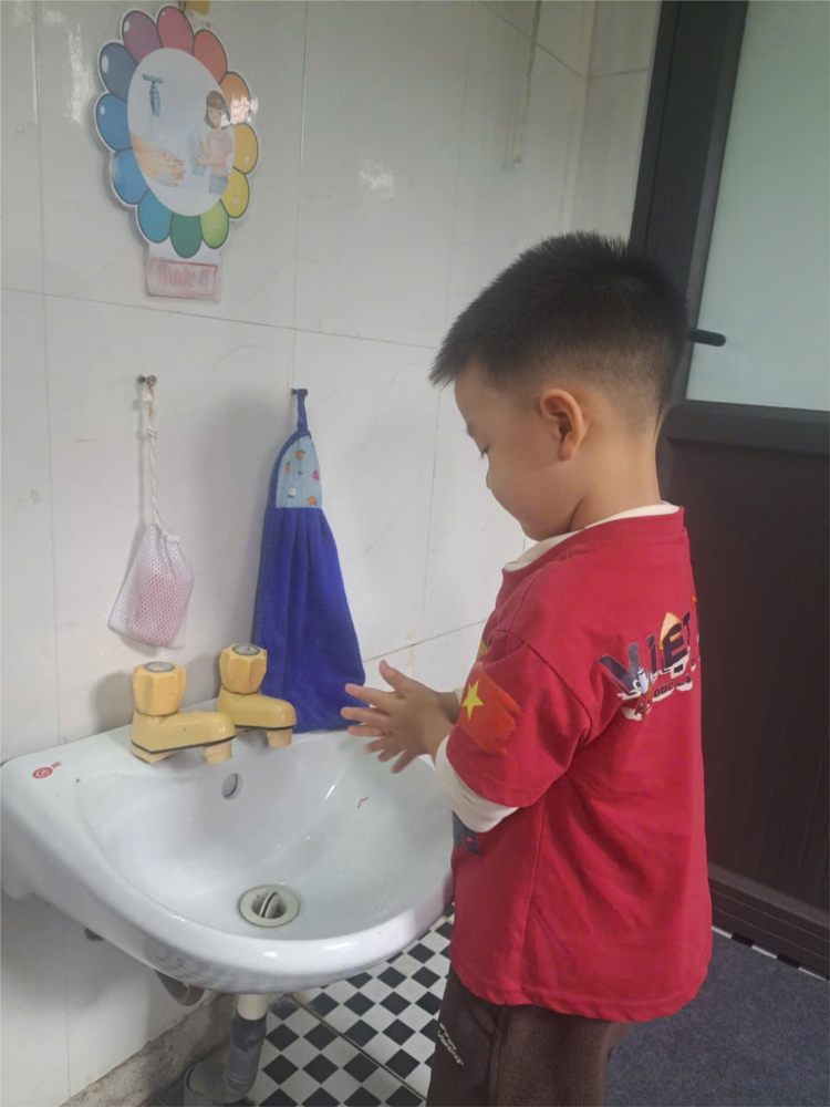 Dưới sự hướng dẫn tận tình của cô, từng bạn nhỏ hứng khởi xắn tay áo, mở vòi nước, lấy xà phòng rồi chà xát nhẹ nhàng. Những đôi tay bé xinh lấp lánh dưới làn nước trong veo, tiếng cười khúc khích vang lên khiến không khí lớp học trở nên thật vui tươi, ấm áp. 🌼