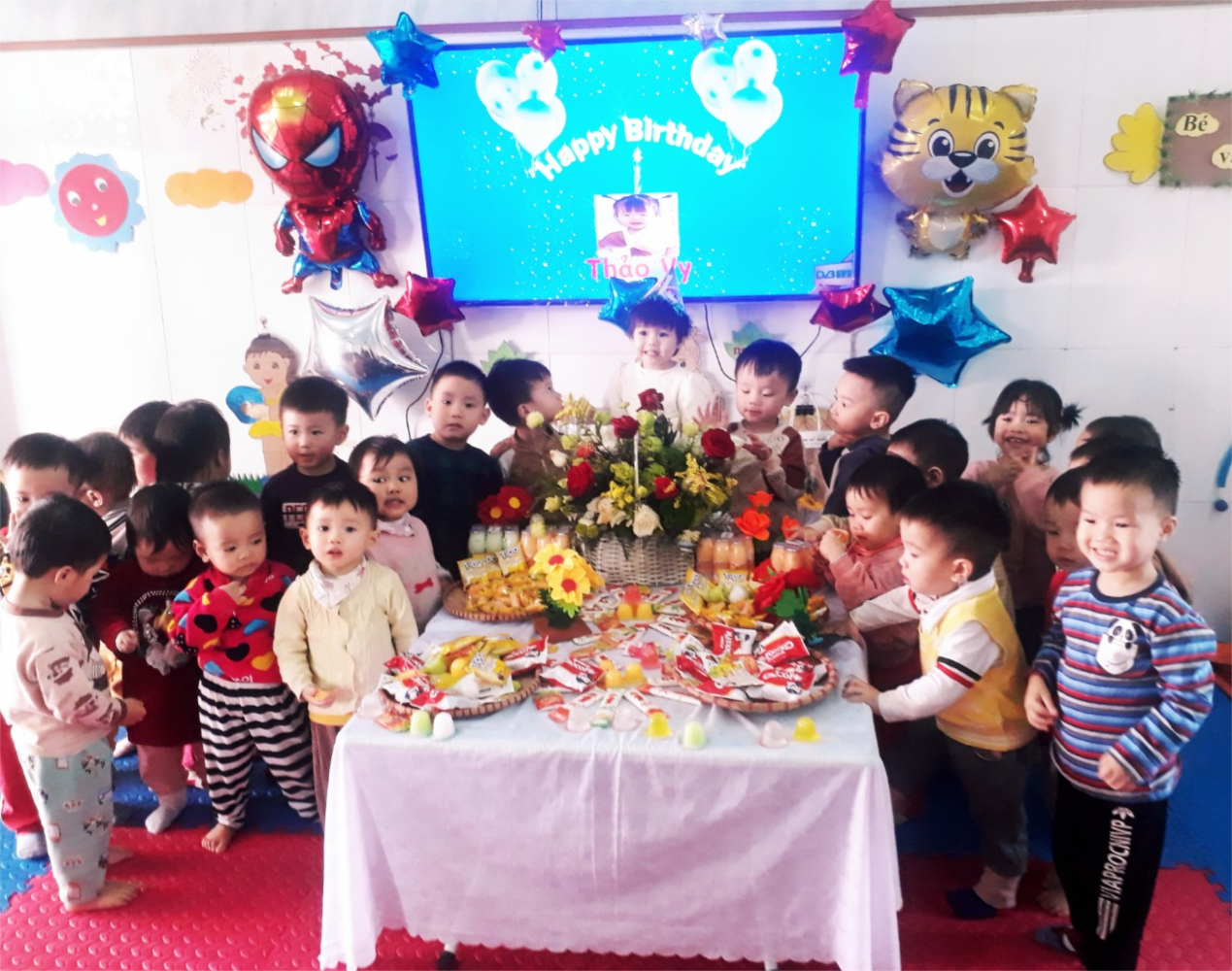 Tiệc sinh nhật ở nhà thì ấm cúng. Tiệc sinh nhật ở nhà hàng thì sang trọng. Còn tiệc sinh nhật ở lớp cùng các cô và các bạn thì sao? Vì sao bé nào trong lớp cũng háo hức, chờ mong được tổ chức sinh nhật ở tại lớp đến thế? Thật thú vị khi bé được tổ chức sinh nhật ở lớp, bé sẽ vui hơn vì được trở thành tâm điểm ở lớp dù chỉ trong 1 ngày. Và sau đây là hình ảnh sinh nhật Bé Thảo Vy lớp Cơm Thường C.