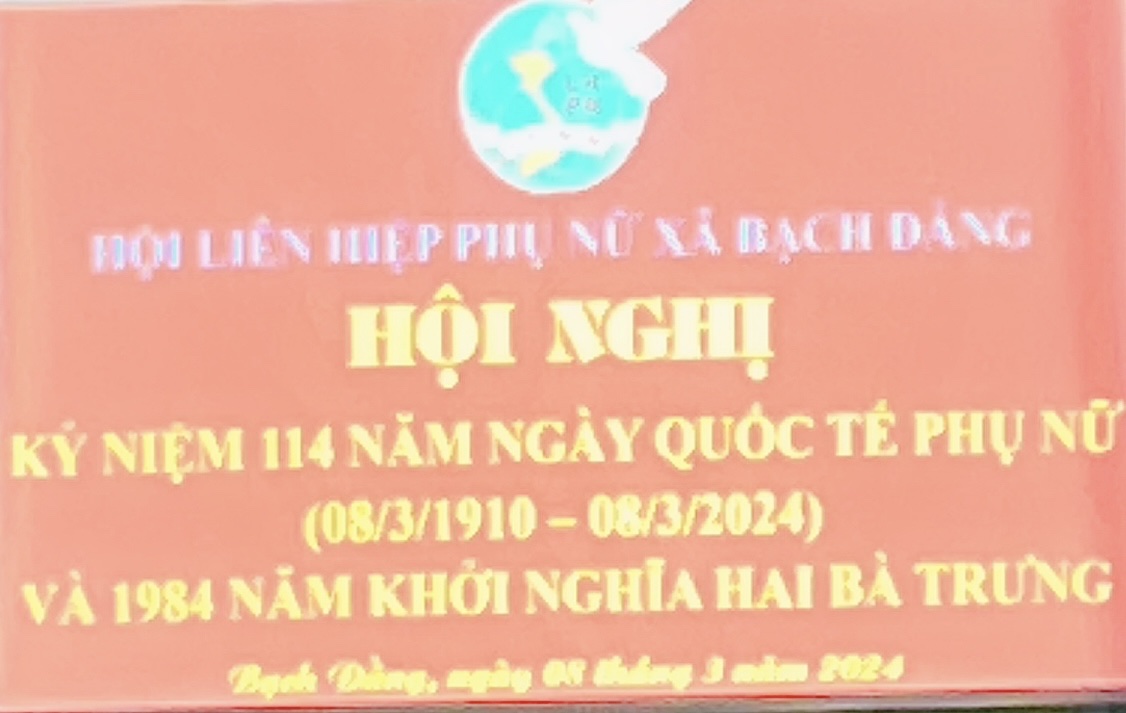 Sáng ngày 08/03/2024 Hội LHPN xã Bạch Đằng tổ chức Hội nghị kỷ niệm 114 năm ngày quốc tế phụ nữ 8/3 và 1984 năm cuộc khởi nghĩa Hai Bà Trưng.