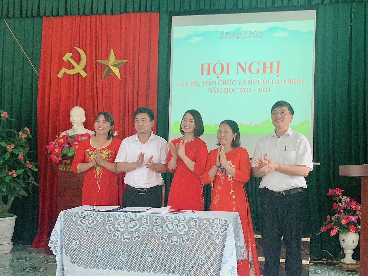 Sáng ngày 20/10/2023 Trường Mầm non Bạch Đằng tổ chức Hội nghị Cán bộ, viên chức và người lao động năm học 2023-2024. Tham dự Hội nghị có các đồng chí lãnh đạo đại diện: Đảng ủy, HĐND, UBND xã Bạch Đằng, Đại diện Hội CMHS cùng toàn thể cán bộ, viên chức và người lao động nhà trường. Với niềm hân hoan, phấn khởi của tập thể CBGVNV trong nhà trường và sự quan tâm, động viên, ghi nhận những nỗ lực, thành tích nhà trường đã đạt được trong năm học vừa qua của các cấp lãnh đạo, các bậc phụ huynh. Hội nghị thành công rực rỡ. Chúc cho trường mầm non Bạch Đằng luôn hoàn thành xuất sắc nhiệm vụ năm học 2023- 2024.