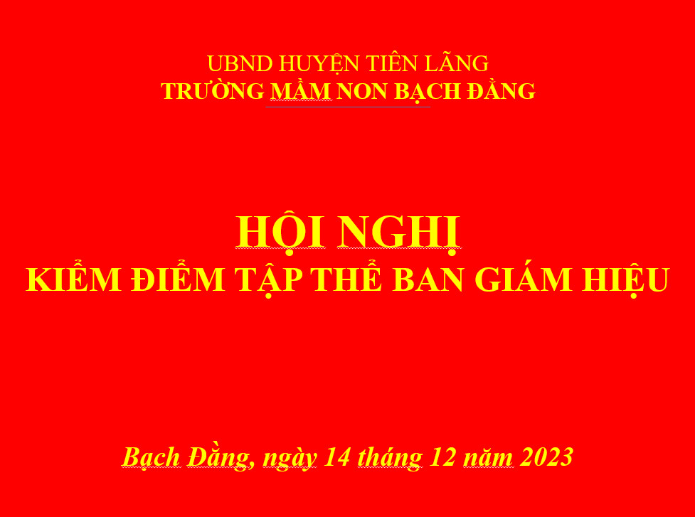 Chiều ngày 14/12/2023, trường Mầm nonBạch Đằng tổ chức Hội nghị kiểm điểm tập thể lãnh đạo quản lý, Hiệu trưởng, Phó Hiệu trưởng năm 2023, Hội nghị kiểm điểm đảng viên năm 2023. Về dự Hội nghị kiểm điểm tập thể lãnh đạo quản lý, Hiệu trưởng, Phó Hiệu trưởng năm 2023, trường Mầm non Bạch Đằng rất vinh dự được đón các đồng chí:- Đồng chí Hoàng Trung Dũng - Huyện ủy viên, Trưởng Ban Tổ chức Huyện ủy;- Đồng chí Phạm Thị Xuân - Huyện ủy viên, Trưởng Ban pháp chế- Hội đồng nhân dân huyện; - Đồng chí Phan Đức Hùng- Chuyên viên Phòng giáo dục;- Đồng chí Bùi Tiến Tài- Bí thư Đảng ủy xã;- Đồng chí Lương Xuân Trí- Phó bí thư xã, Ban Giám hiệu, Tổ trưởng, phó chuyên môn, Chủ tịch công đoàn, Bí thư chi đoàn. Tại Hội nghị kiểm điểm tập thể lãnh đạo quản lý, Hiệu trưởng, Phó Hiệu trưởng năm 2023, đồng chí Đào Thị Lý đã trình bày Báo cáo tóm tắt kiểm điểm tập thể lãnh đạo quản lý; các đồng chí trong Ban Giám hiệu trình bày báo cáo kiểm điểm cá nhân: