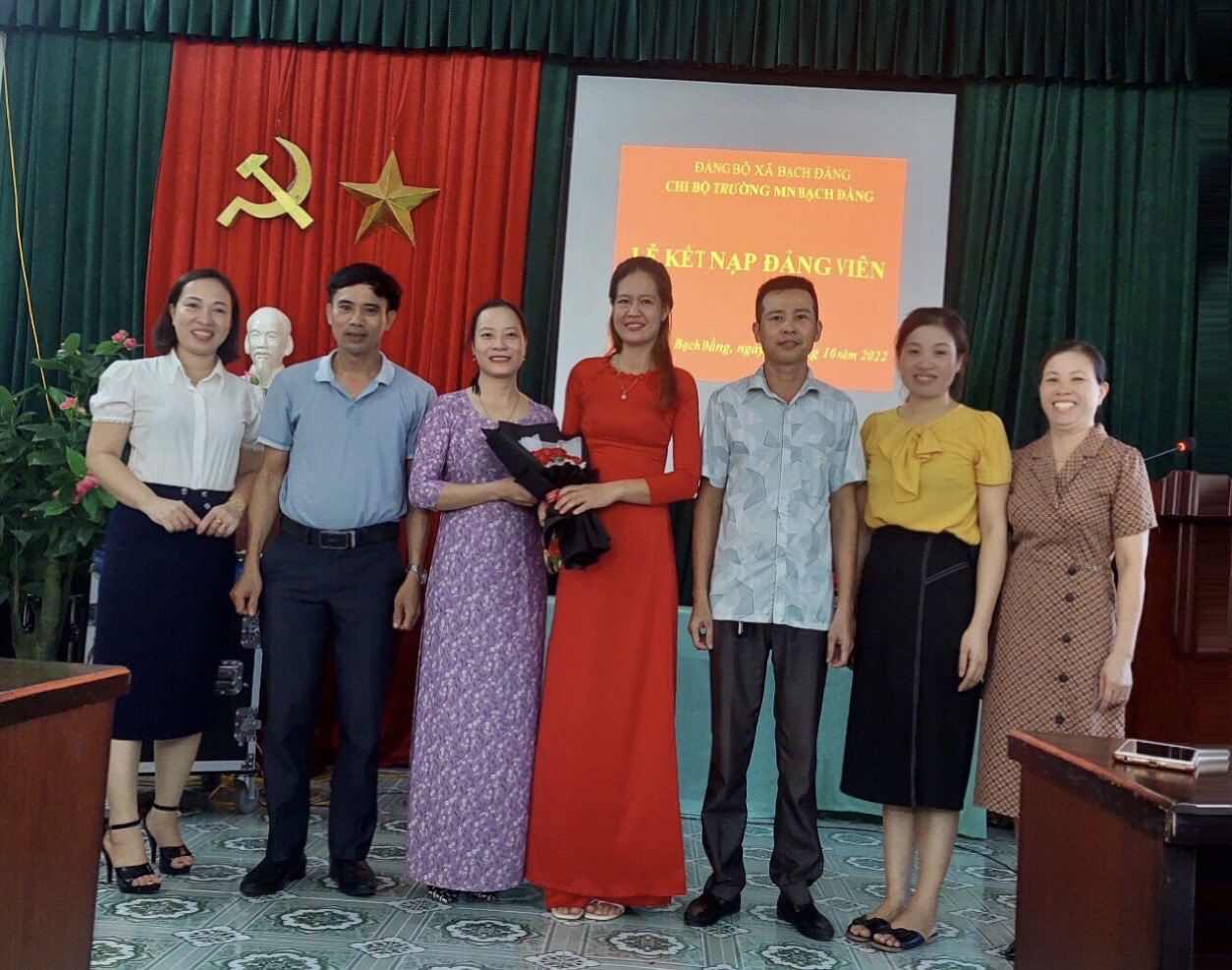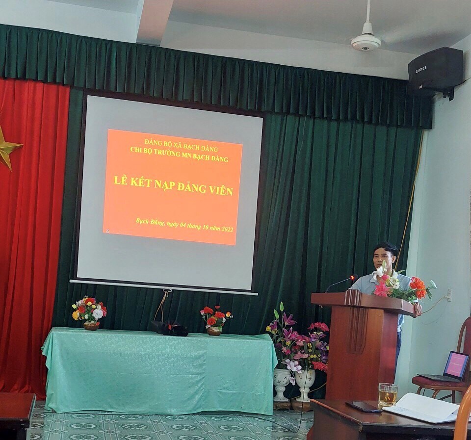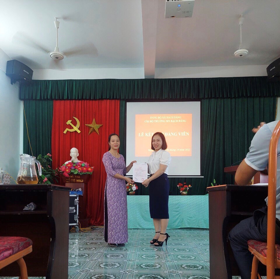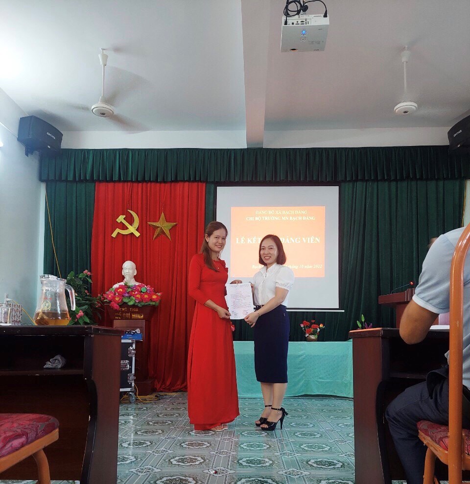 Hôm nay, ngày 04 tháng 10 năm 2022 Chi bộ trường mầm non Bạch Đằng đã tổ chức kết nạp cho quần chứng ưu tú Phạm Thị Ngọc- Phạm Thị Xim – Cô nuôi trường mầm non Bạch Đằng vào Đảng Cộng sản Việt Nam.