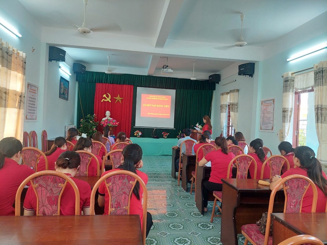 Đồng chí Bí thư chi bộ nhà trường lên trao Quyết định Kết nạp đảng cho đồng chí Phạm Thị Ngọc- Phạm Thị Xim, đồng thời quán triệt nhiệm vụ, quyền hạn của người đảng viên, nhiệm vụ của Chi bộ. Phân công đảng viên chính thức giúp đỡ đồng chí:Phạm Thị Ngọc- Phạm Thị Xim