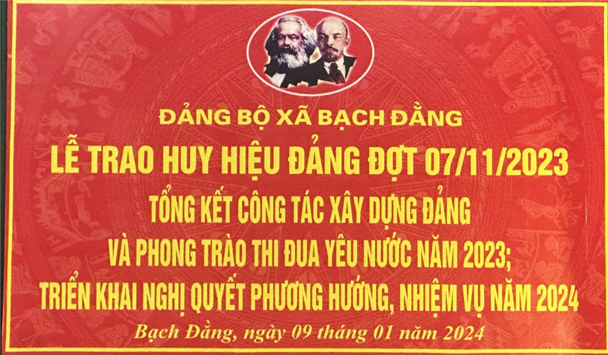 Sáng ngày 09/01/2024. Tại Hội trường UBND xã Bạch Đằng diễn ra Lễ trao huy hiệu đảng đợt 07/11/2023; Tổng kết công tác xây dựng Đảng và phong trào thi đua yêu nước năm 2023.
