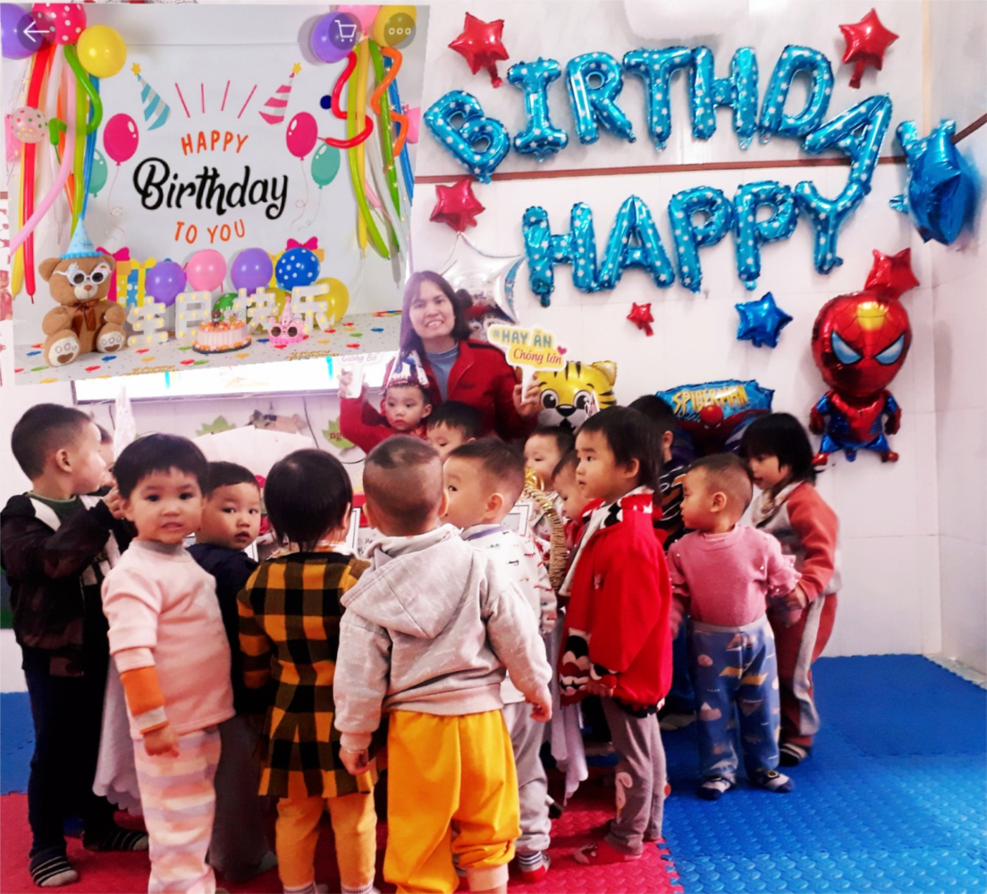 Hàng ngày khi đến trường các con không chỉ được vui chơi với bạn bè mà còn được các cô yêu thương chăm sóc, dạy dỗ. Các cô luôn tạo cho các con môi trường vui vẻ, thân thiện, tạo không khí và tâm lý vui vẻ cho các con khi đến lớp thông qua việc tổ chức các hoạt động trên lớp hàng ngày. Hoạt động tổ chức sinh nhật cho các con là một hoạt động rất ý nghĩa, giúp trẻ mạnh dạn, tự tin, thân thiện hơn khi giao tiếp hòa mình với các bạn trong buổi sinh nhật ngoài ra bữa tiệc sinh nhật tại lớp còn tạo cho trẻ sự vui vẻ phấn khích.