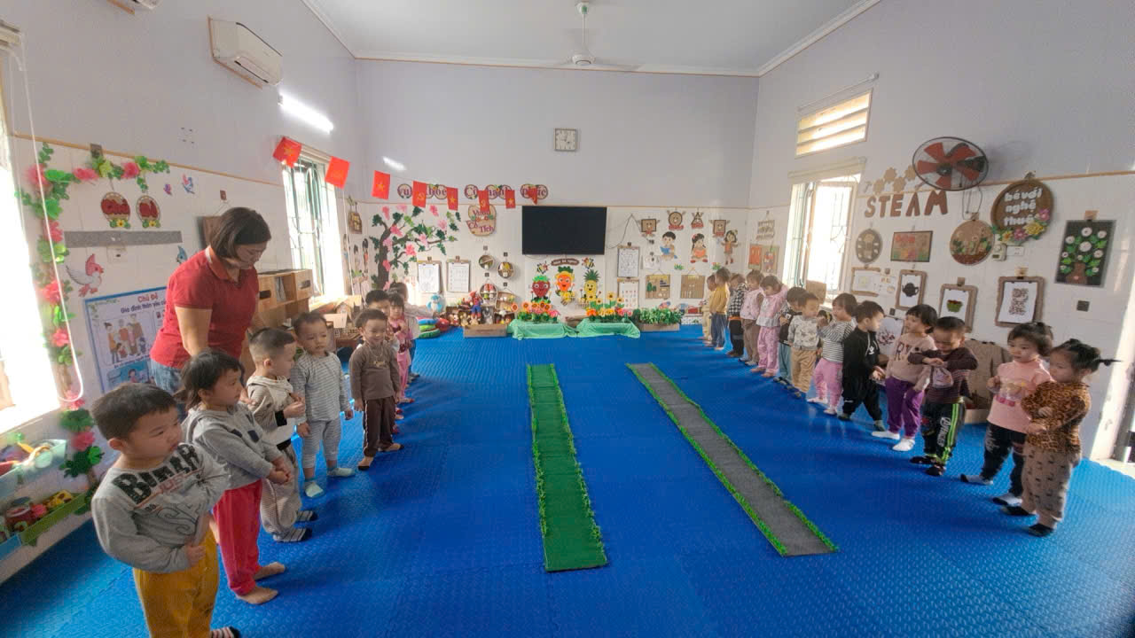 Hôm nay, các bạn nhỏ lớp 3 tuổi A đã có một hoạt động vô cùng thú vị khi cùng cô tham gia trò chơi vận động “Đi trong đường hẹp – Trồng hoa tặng bà”.