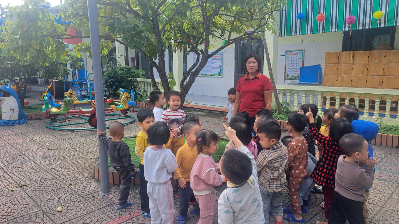 Những chiếc lá vàng, lá xanh rơi khẽ theo gió, tạo nên một “thảm lá” đầy màu sắc. Các con vui thích chạy nhảy, nâng niu từng chiếc lá nhỏ xinh và bỏ vào giỏ. Tiếng cười hồn nhiên, bước chân lon ton và đôi mắt sáng trong khiến sân trường như ngập tràn sức sống của mùa thu