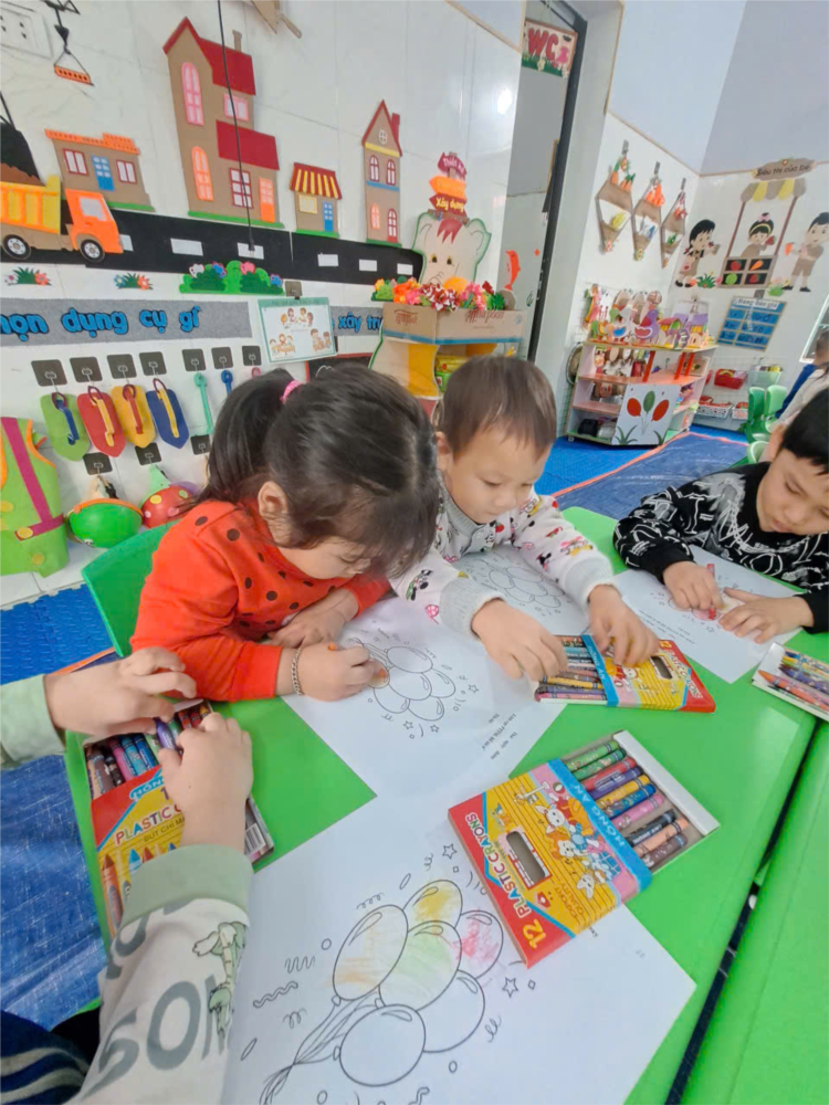 Với những bàn tay nhỏ xinh, các con cẩn thận chọn từng cây bút màu, khéo léo tô lên những quả bóng bay tròn xinh. Màu đỏ, vàng, xanh, tím hòa quyện rực rỡ trên trang giấy như những chùm bóng bay bay cao mang theo bao ước mơ và niềm vui tuổi thơ 🌈✨