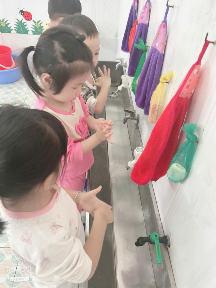 🏘️Tại trường, trẻ được cô giáo hướng dẫn thực hiện các kỹ năng vệ sinh phù hợp với độ tuổi như: rửa tay bằng xà phòng đúng quy trình, lau mặt, đi vệ sinh đúng nơi quy định, biết xả nước, bỏ rác đúng chỗ, giữ gìn đồ dùng cá nhân gọn gàng, sạch sẽ… Những thói quen nhỏ này góp phần phòng tránh các bệnh thường gặp như tay chân miệng, tiêu chảy, cúm, bệnh về da và đường hô hấp.