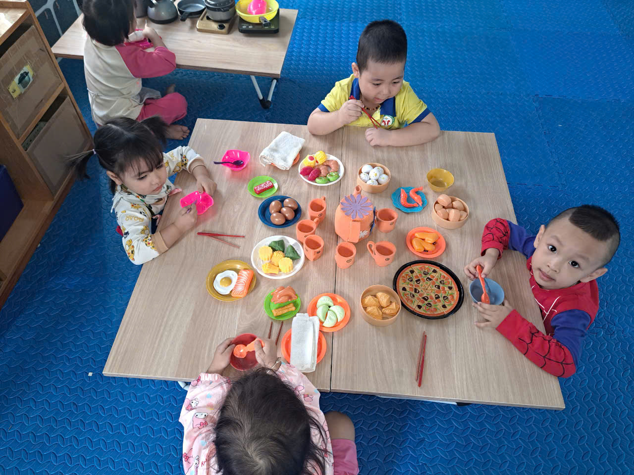 Chơi góc nấu ăn không chỉ giúp các con vui vẻ mà còn rèn luyện nhiều kỹ năng quan trọng. Các bé sẽ học cách hợp tác, chia sẻ với bạn khi cùng nhau nấu nướng, bày bàn và trò chuyện. Các con còn được rèn luyện sự khéo léo của đôi tay khi cầm nắm dụng cụ, và học thêm nhiều từ ngữ mới về các món ăn và đồ dùng nhà bếp.