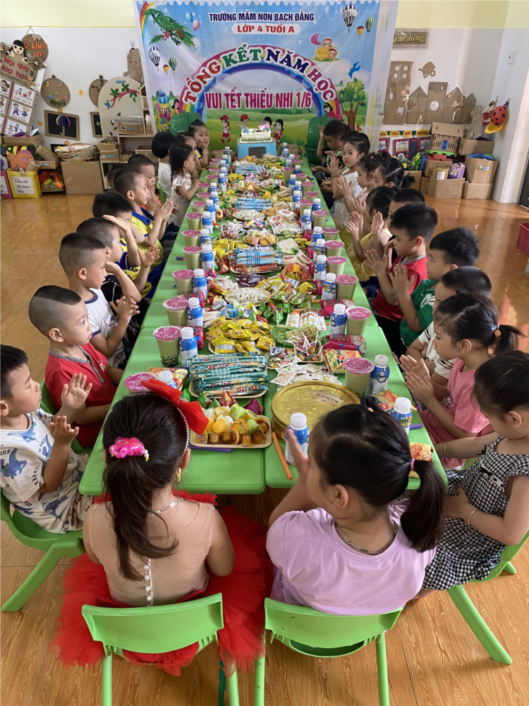 Trẻ ăn liên hoan tổng kết cuối năm học