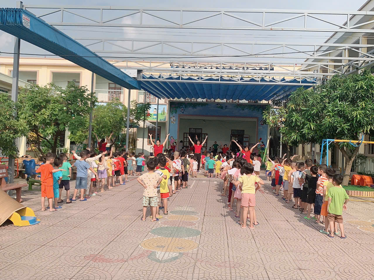 Sau đây là một vài hình ảnh tập thể dục sáng của các bé khối 5 tuổi: